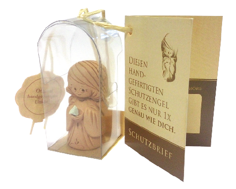 Handgefertigter Schutzengel – Unikat mit echtem Vulkansplitter, symbolischer Begleiter für Schutz und Stärke.