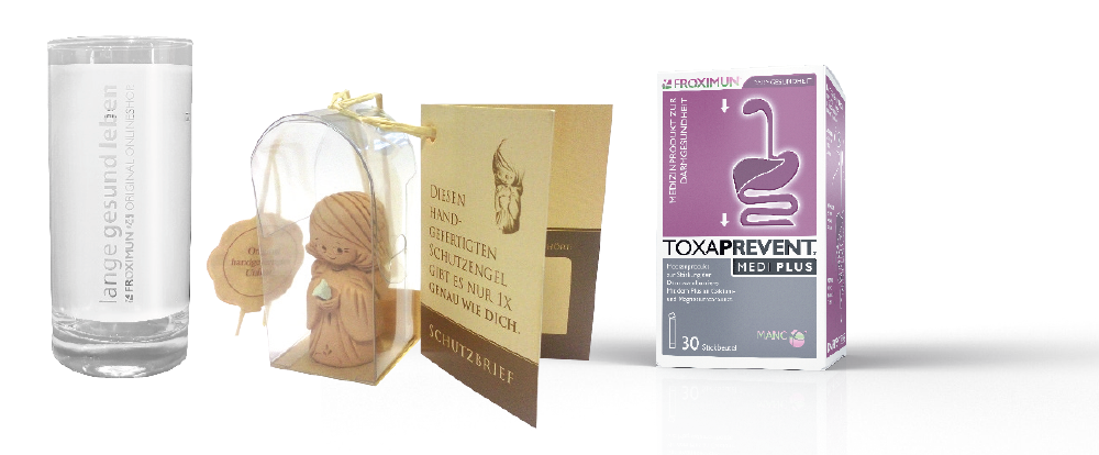 Die FROXIMUN Gesundheitsedition S – Weihnachten mit TOXAPREVENT® bietet ein hochwertiges Geschenk für mehr Wohlbefinden. Das Set kombiniert 30 TOXAPREVENT® MEDI PLUS Sticks zur Unterstützung der Darmbarriere, einen handgefertigten Schutzengel mit Vulkansplitter und ein FROXIMUN® Trinkglas in Sonderedition. Ideal für alle, die ein sinnvolles, natürliches und zuverlässiges Weihnachtsgeschenk suchen. Gesundheit verschenken – mit einer exklusiven Geschenkbox, die echten Nutzen bietet und sich perfekt als persönliches Präsent für Familie, Freunde oder geschätzte Kunden.
