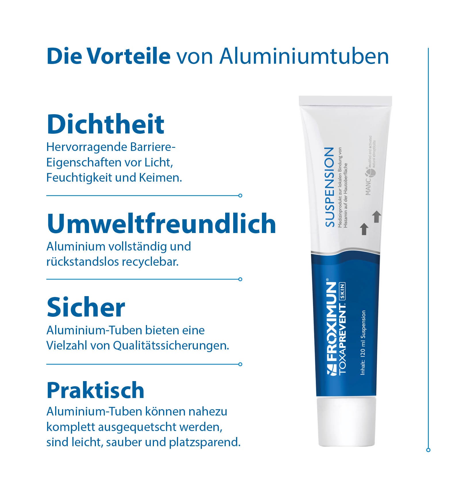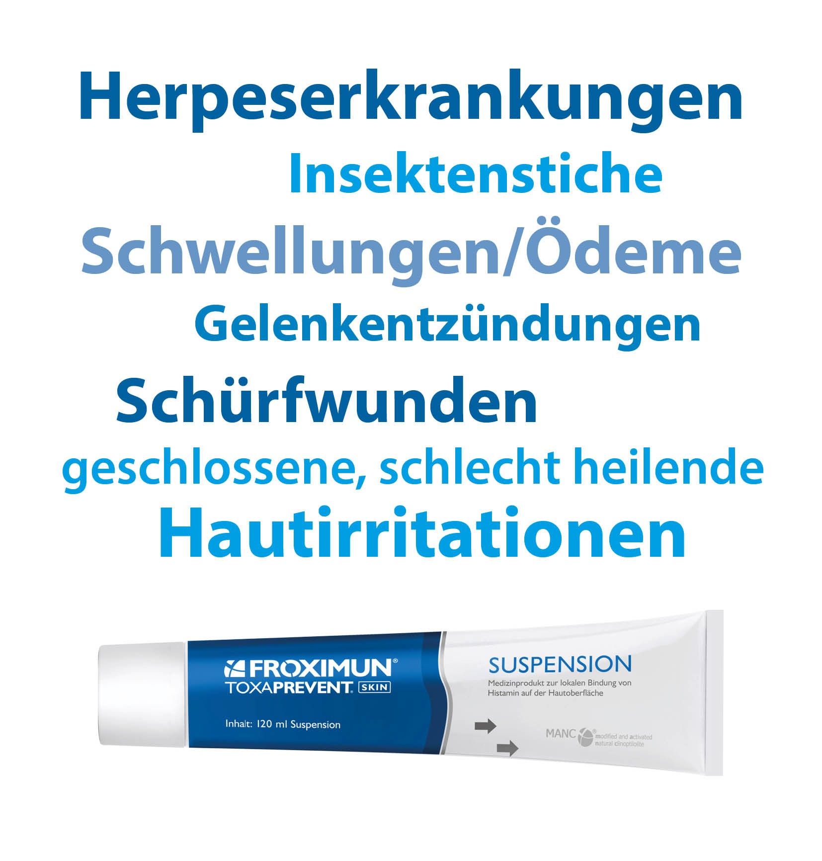 TOXAPREVENT® SKIN Suspension - ein Produkt auf Naturbasis, welches schnelle Linderung verspricht, kühlt und kein Brennen verursacht. Die besten Eigenschaften zusammengefasst finden Sie in dieser cremigen Suspension. Die Regeneration der Hautstruktur erfährt eine neue Dimension, da es eine Tiefenwirkung erreicht, welche durch Ästhetikkliniken dermatologisch getestet und bestätigt wurde. Bisher diente es als Klinikbaustein zur Unterstützung der Wundheilung bei geschlossenen, juckenden oder schlecht heilenden Wunden.